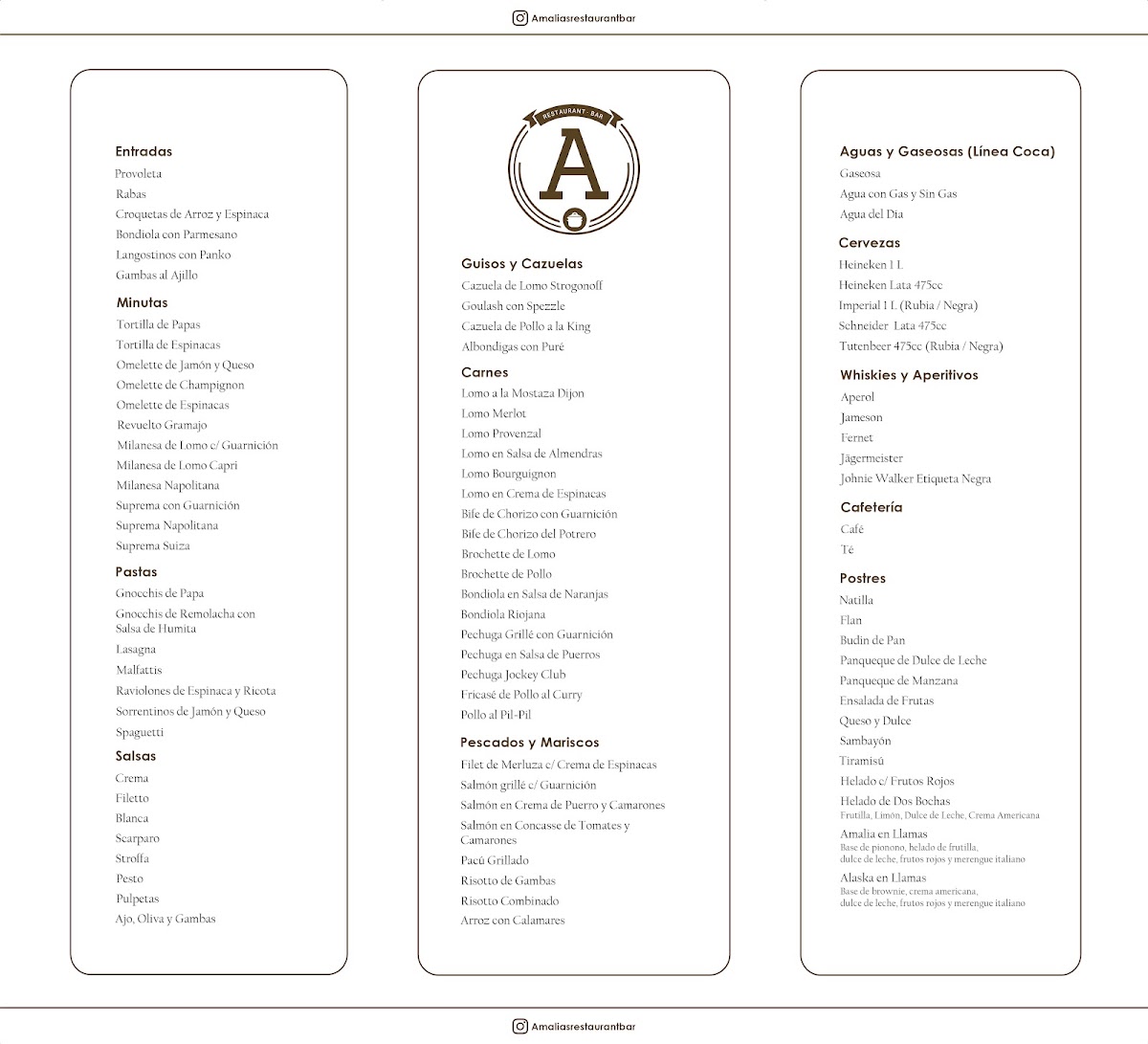Amalias Restaurant Bar Quilmes offers a rich culinary journey rooted in generous, comforting dishes that captivate every palate. Located in the heart of Quilmes, this restaurant bar excels with a diverse main menu, a thoughtful wine list, and a well-curated executive menu perfect for midday diners. Signature dishes like the malfatti bolognesa and oversized ravioles stand out for their authentic flavors and generous portions, earning high praise for their comforting, homemade appeal. The goulash emerges as a heartwarming choice, ideal for cooler days, while desserts such as the tiramisu and a delicate, lighter natilla elevate the experience with their finesse.